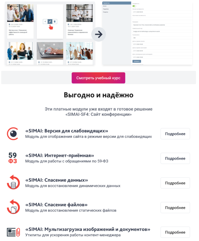 SIMAI-SF4: Сайт конференции - адаптивный с версией для слабовидящих
