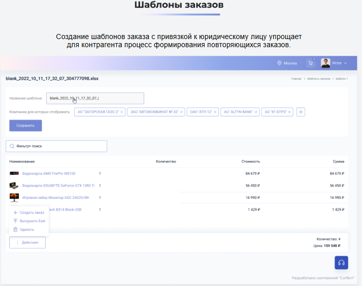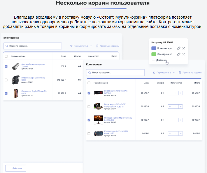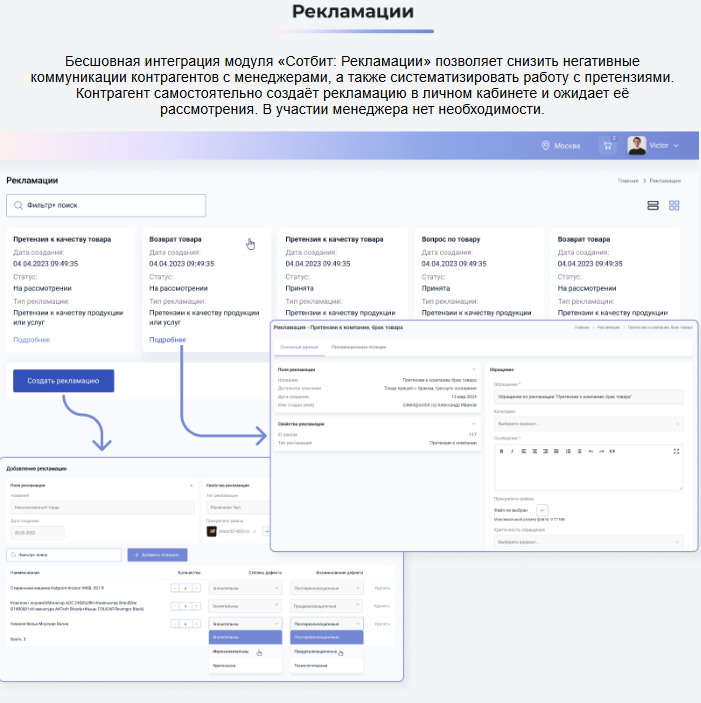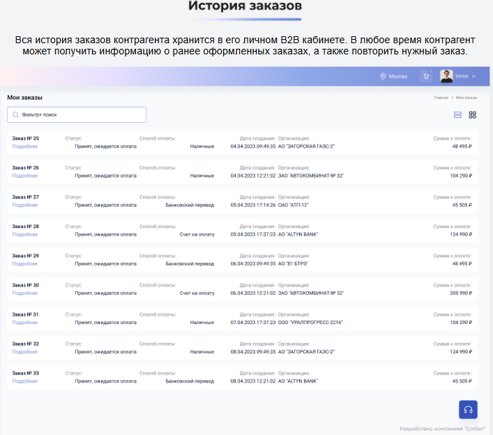 Сотбит: B2B CRM — это решение для создания B2B платформы, интегрированной с Битрикс24. Клиентская часть реализована в Сотбит: B2B портале, где клиенты оформляют заказы и отслеживают документооборот. Административная часть функционирует в Битрикс24, где менеджеры ведут сделки и взаимодействуют с клиентами.