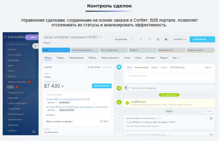 Сотбит: B2B CRM – оптовая платформа с интеграцией Битрикс24
